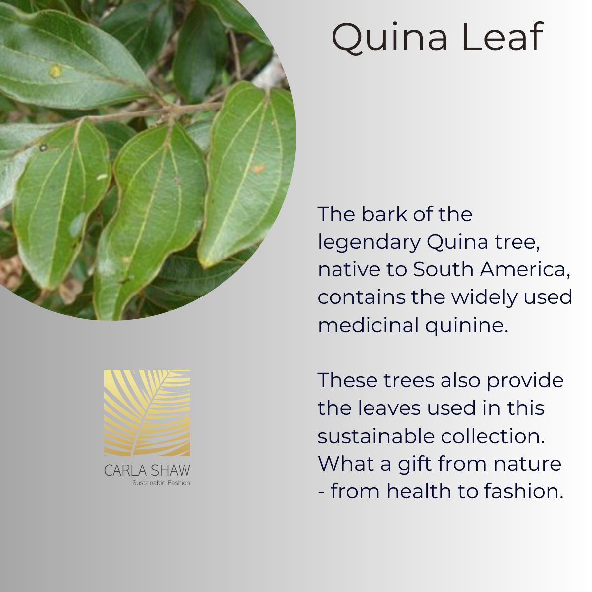 The bark of the legendary Quina tree, native to South America, contains the widely used medicinal quinine. These trees also provide the leaves used in this absolutely stunning necklace - available in 18K-gold. What a gift from nature - from health to fashion.